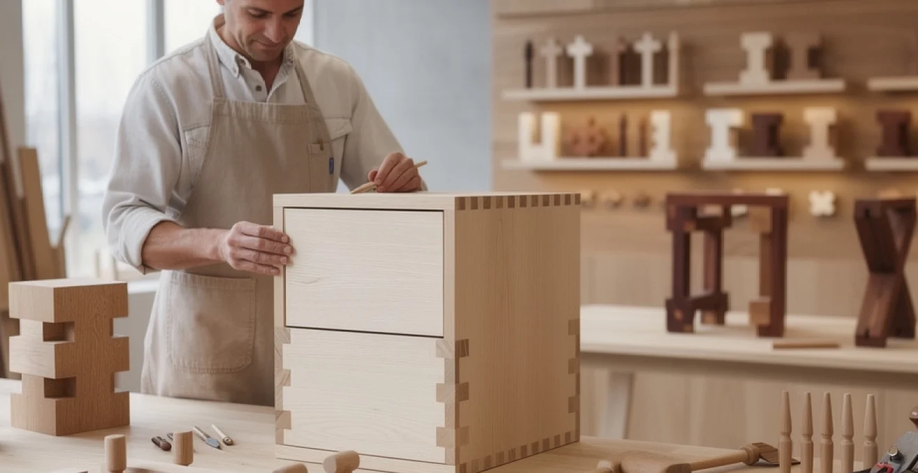 Les assemblages à queue d’aronde incarnent peut-être mieux que tout autre la menuiserie sans clous ni vis. Leur forme trapézoïdale empêche mécaniquement l’arrachement, tout en offrant un potentiel décoratif unique. Lorsqu’ils sont visibles, ces joints deviennent une signature de qualité ; lorsqu’ils sont cachés, ils assurent une résistance exceptionnelle, en particulier face aux tractions répétées comme celles subies par les tiroirs.