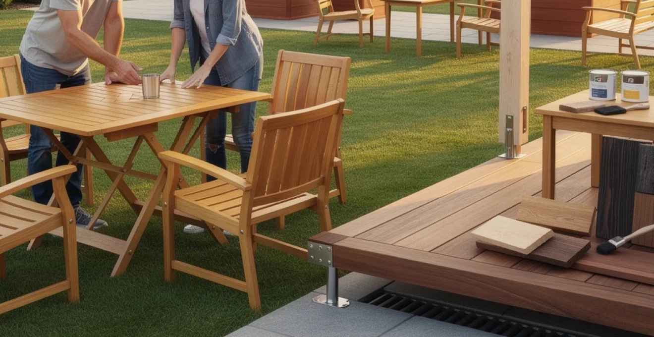 Quand le mobilier a déjà bien vieilli, une rénovation plus globale s’impose parfois. Un ponçage léger (grain 80 puis 120) pour enlever les fibres soulevées, suivi d’un dégriseur et d’un saturateur, redonne une seconde jeunesse à une table ou un banc en teck ou en acacia. Si certaines pièces structurelles sont trop atteintes, il est souvent plus rentable de les remplacer localement plutôt que de changer tout le meuble. Cette approche « chirurgicale » réduit les coûts, les déchets et prolonge de plusieurs années la durée de vie de votre aménagement en bois.