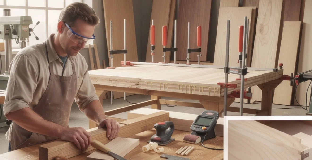 Pour optimiser leur efficacité, alternez les serre-joints au-dessus et au-dessous de la pièce afin de compenser les efforts et éviter le cintrage. Dans un collage à plat joint, on recommande en général un serre-joint tous les 20 à 30 cm. Serrez progressivement, en passant d’un serre-joint à l’autre plutôt que de bloquer un point d’un coup : vous verrez la colle perler régulièrement le long du joint, signe d’une pression homogène. Si vous devez poncer ensuite, essuyez l’excès de colle fraîche avec une éponge légèrement humide plutôt que d’attendre qu’elle durcisse.