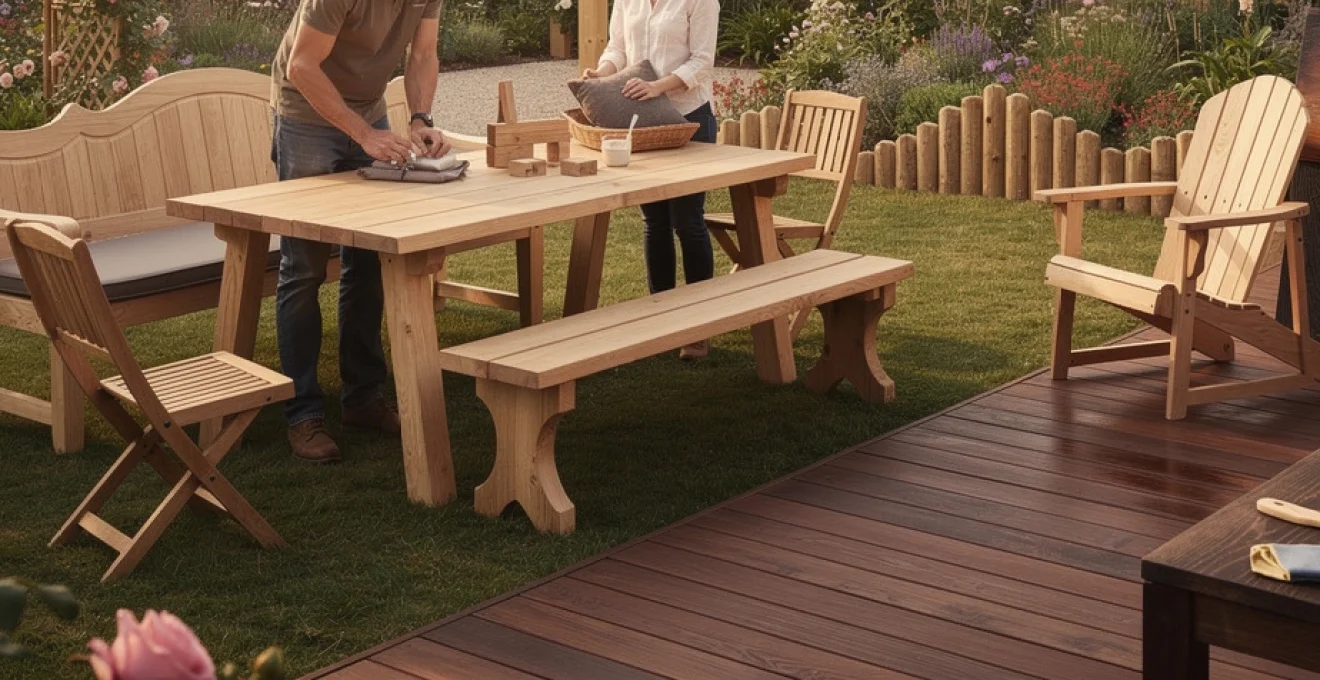 Mobilier de jardin en bois : bancs, tables et chaises rustiques sur mesure